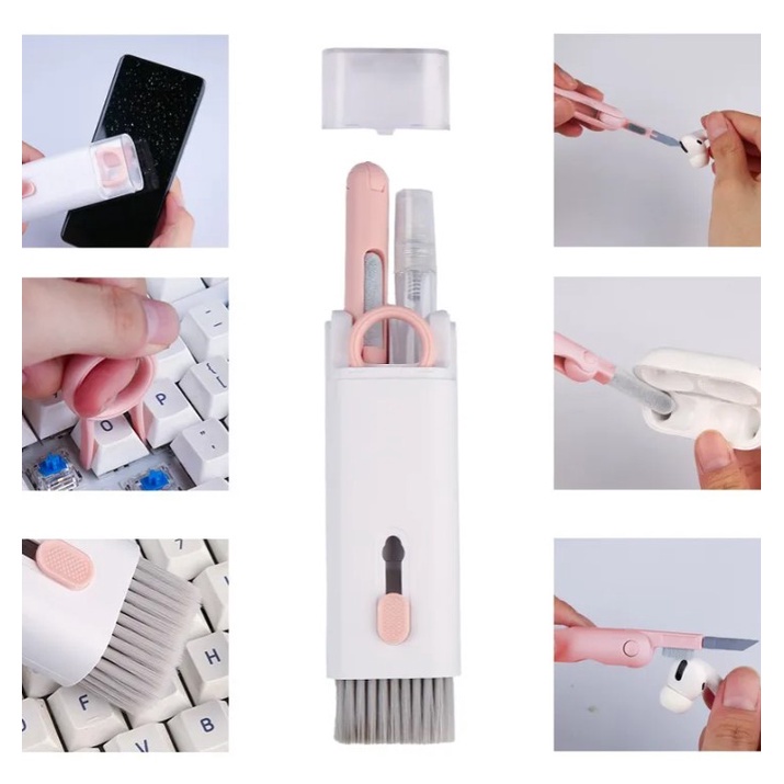 Kit De Escova De Limpeza De Teclado 7 Em 1 Multifuncional Portátil Para Computador/Fone De Ouvido/Ferramentas