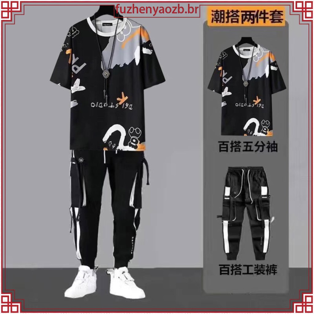 Conjunto Masculino Com Camiseta De Manga Curta E Calça De Carga Estilo Hip Hop Jogger + kit De Camisa Masculina