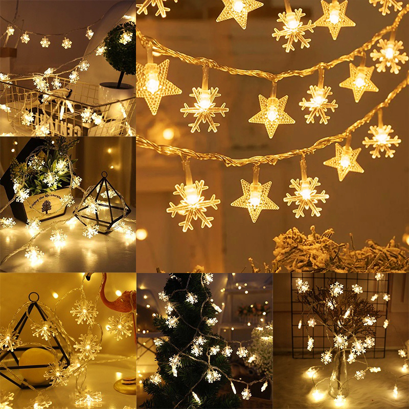1.5/3M Snowflake Star Luzes De Natal Xmas String Lights Decoração Penduradas Ornamentos