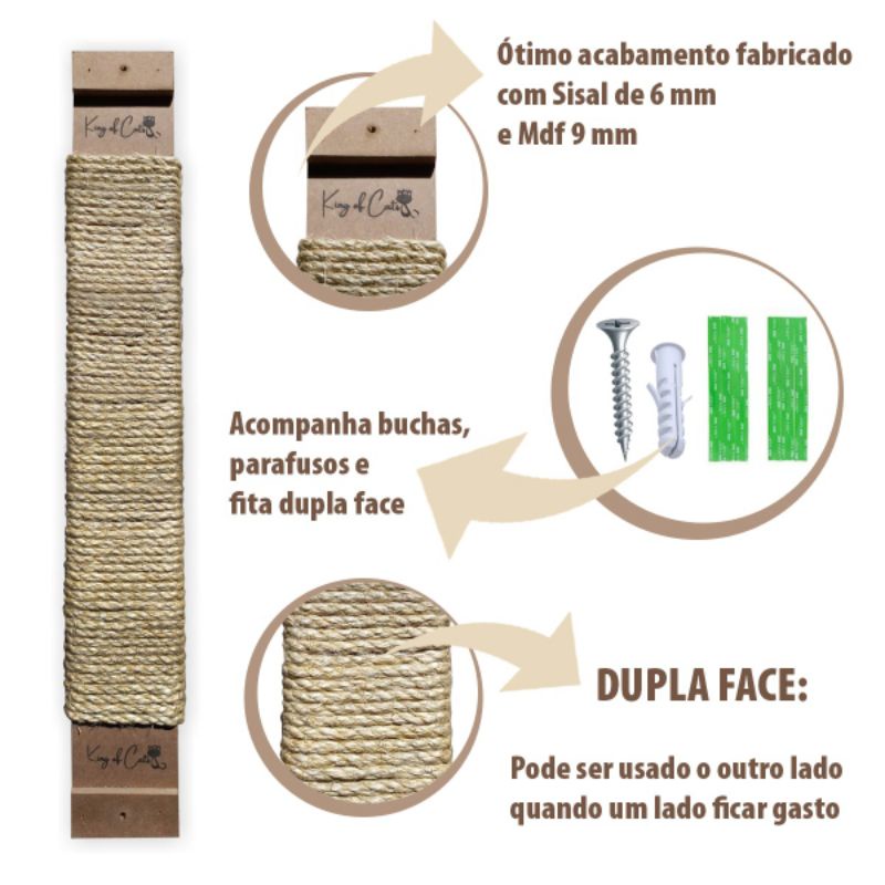 Arranhador de Parede ou Chão Gatificação para Gato Gatos Madeira Sisal Grande - Mimi