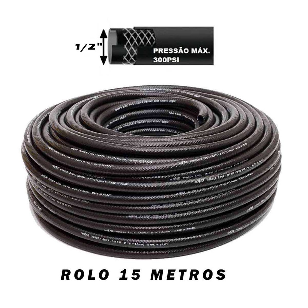 Mangueira Jardim Reforçada 1/2 Preta 300 Psi Para Água 15 Metros + Esguicho De Metal Ajustável