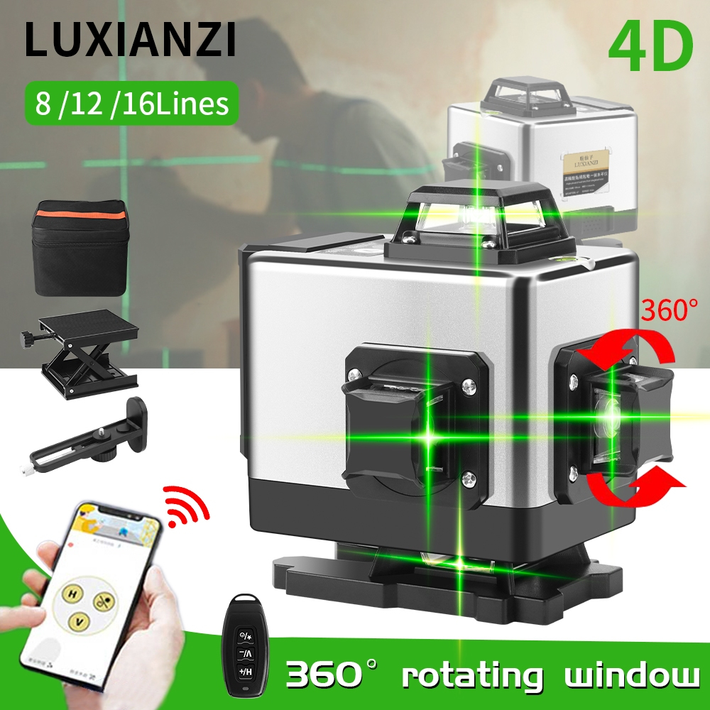 LUXIANZI 4D 8/12/16 Linha Laser Nível Potente Feixes Horizontais E Verticais Verde 360 Ferramenta De Auto-Nivelamento De Janela Rotativa