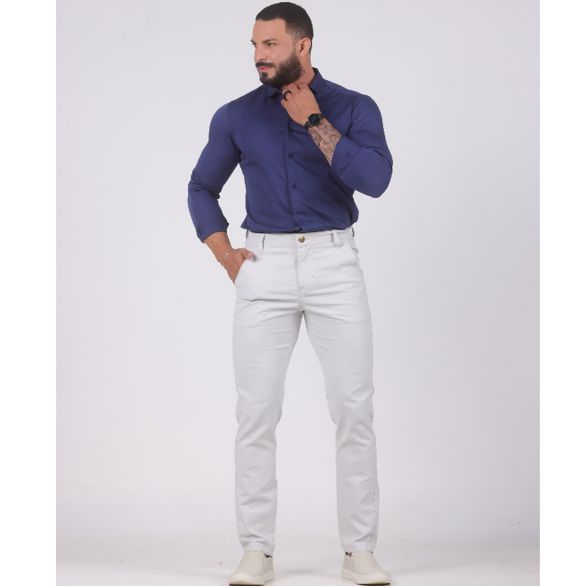 CALÇA SPORT FINO SARJA ALFAIATARIA COM LYCRA MASCULINA COM ELASTANO