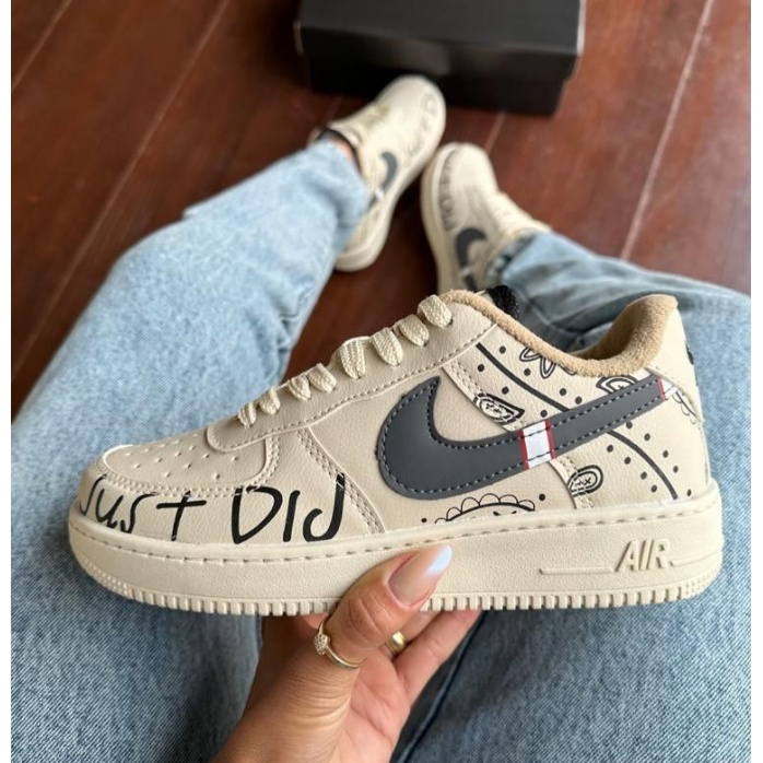 Tenis Air Force Just Did Novo 2024 Oferta Masculino Feminino Linha Premium Bege Louis Vuitton 34 ao 43 Supre Promoção
