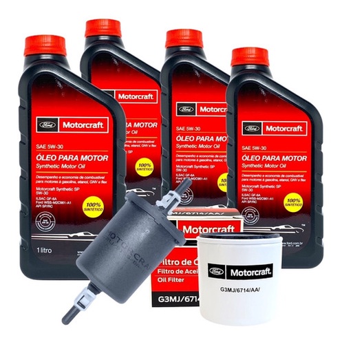 Kit Revisão 4 Litros de Óleo 5W20 100% Motorcraft + Filtros de óleo+Combustível+Ar Ford Ka Ecosport New Fiesta 2014 a 2018