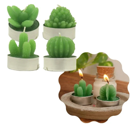 Kit 3 Velas Decorativas em Formato de Cacto Suculentas