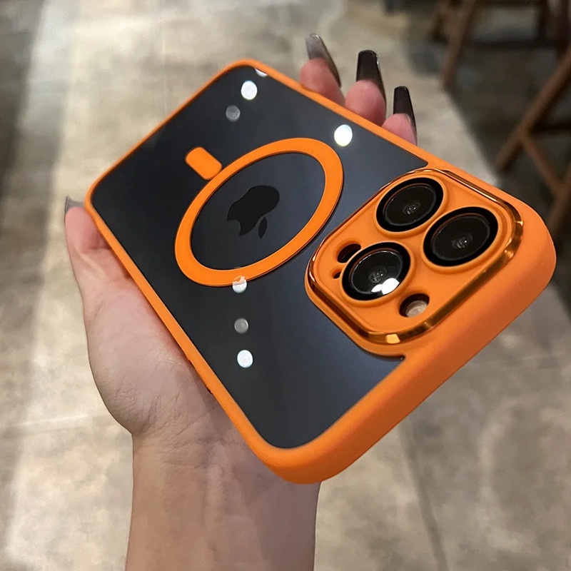 Luxo Transparente Para Capa Magnética Magsafe iPhone 15 14 13 12 Pro Max Acrílico Sem Fio Cobertura De Proteção Da Lente De Vidro De Carga