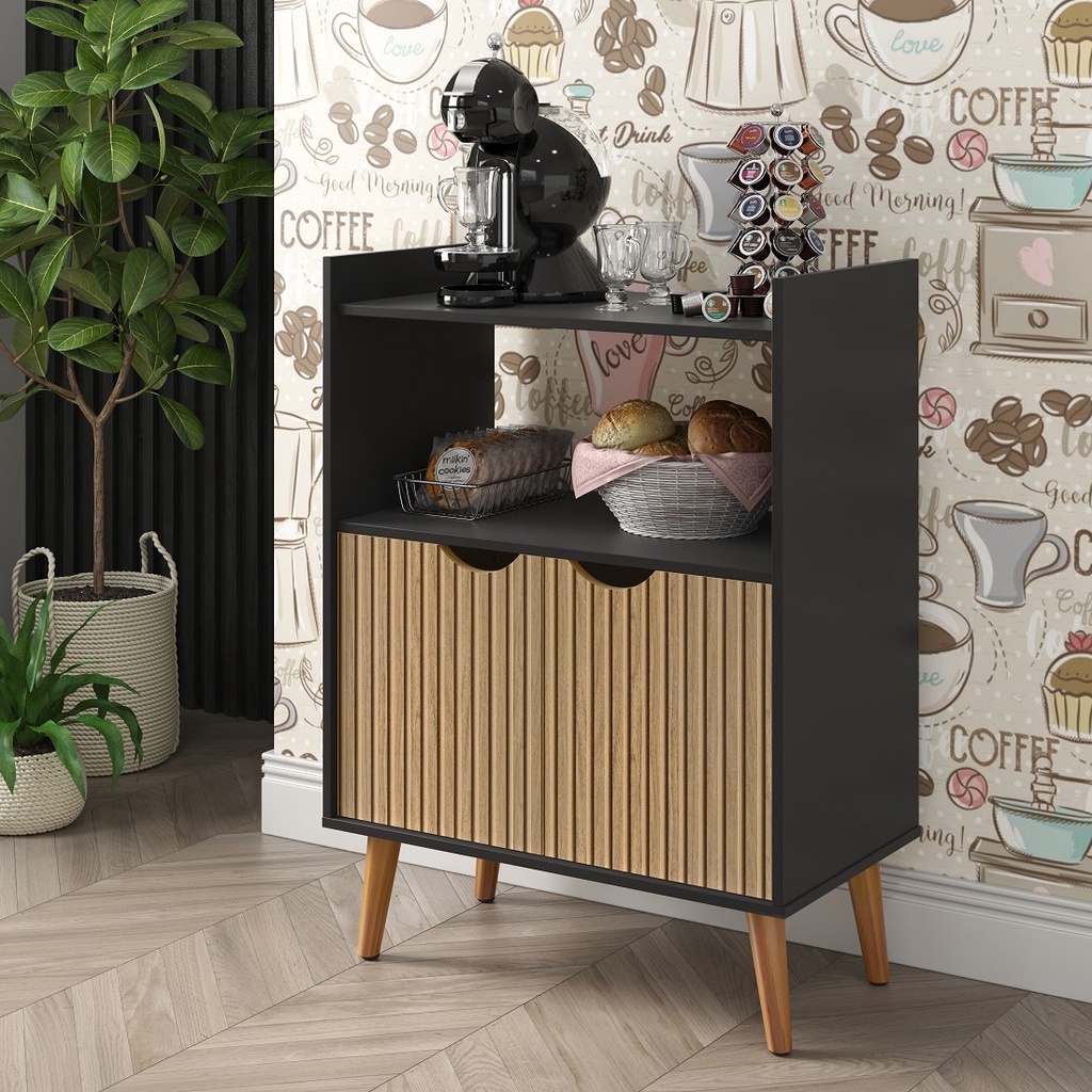Buffet Barthô Classic Aparador Cantinho Do Café Pés Palito Wood Dallas - Preto Com Nature - Lojas GD