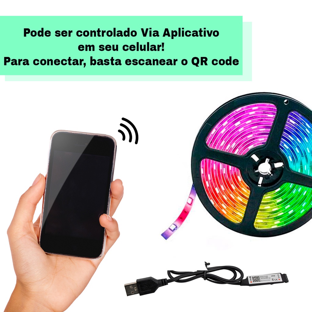 Fita Led Rgb Controle Via App Celular 5 Metros 5v USB Para Tv Pc Carro Quarto Decoração