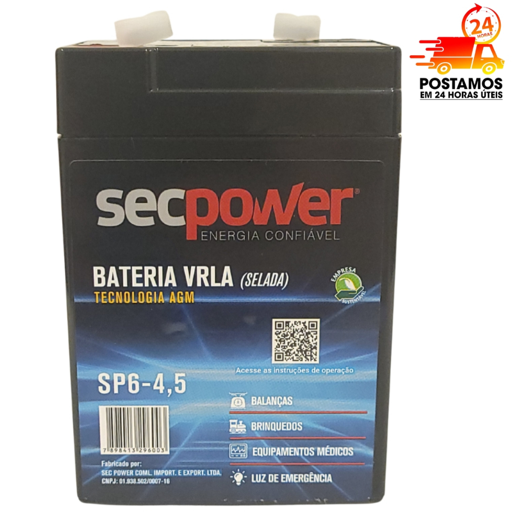 Bateria Selada Secpower 6v 4,5a Recarregavel Luz Emergencia Brinquedos Bandeirantes