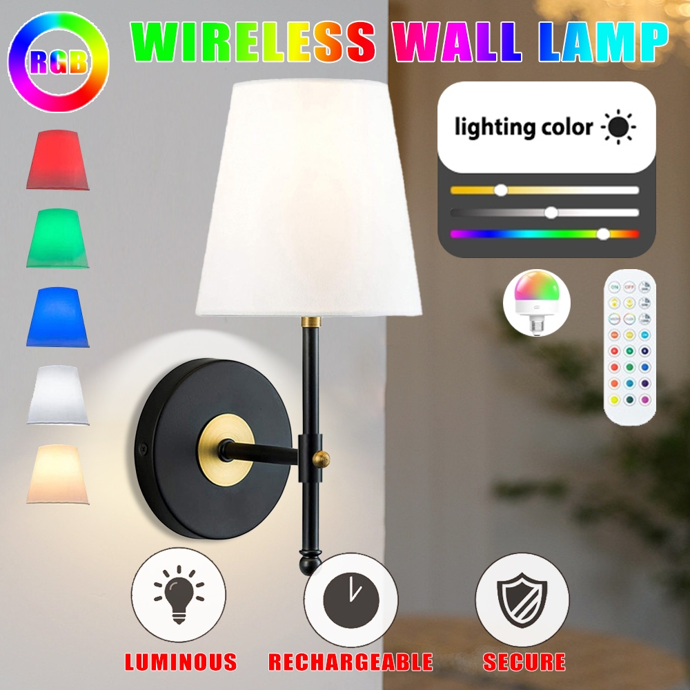 Lâmpada De Parede Sem Fio Recarregável , Luminária Operada Por Bateria Com Controle Remoto De Tecido Retrô Americano Par