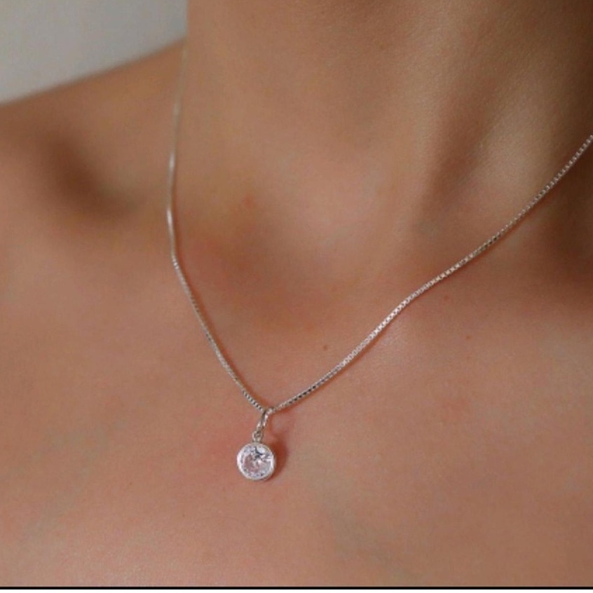 Colar Corrente Ponto de Luz Redondo Folheado a Prata 925 Feminino Com Pedra Zircônia