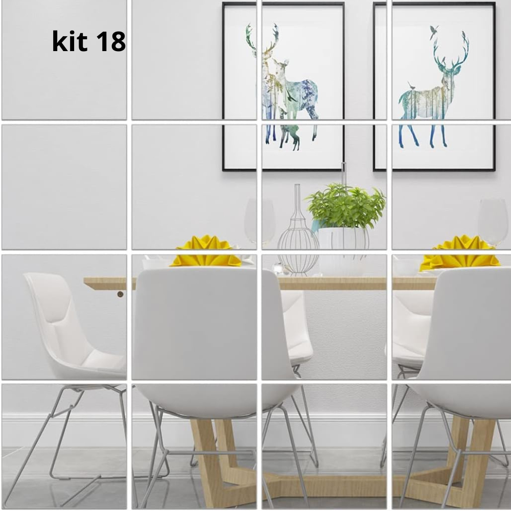 kit 18 Espelhos Adesivo Decorativo De Parede 30x30 cm Quadrado Luca