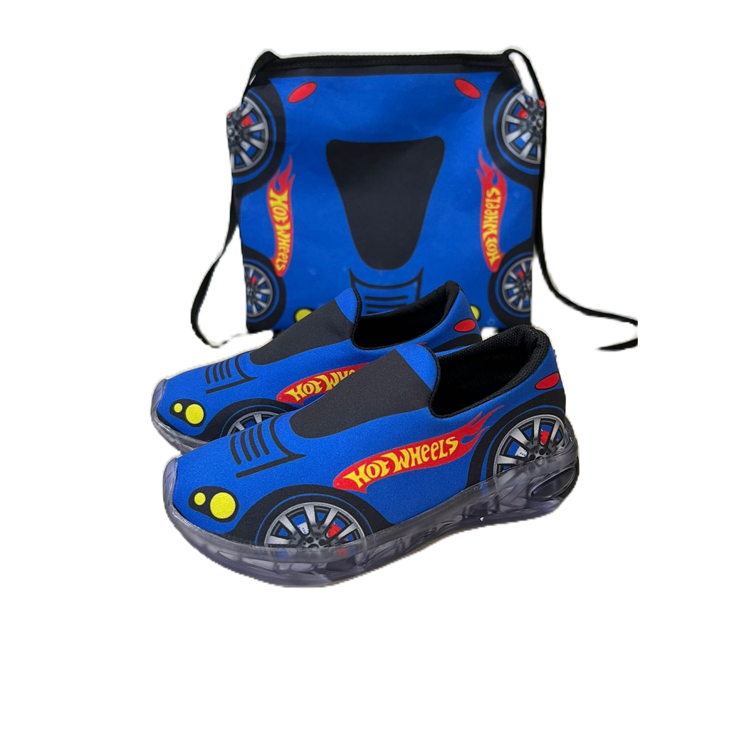 Tênis LED Baby Masculino Calce Fácil Tênis de Luzinha Infantil Menino Carros Hotweels