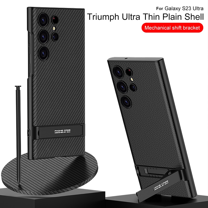 Estojo De Telefone De Luxo Em Couro De Fibra De Carbono Sem Tampa Anti-Queda Para Samsung Galaxy S23 Ultra Plus