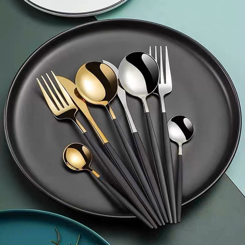 Kit 4 Talheres Em Inox- Dourado Com Preto- Modus