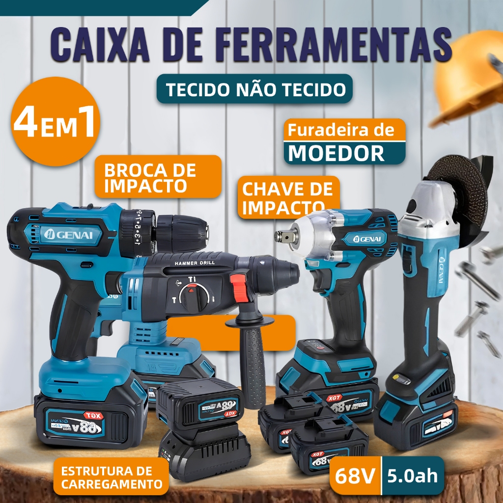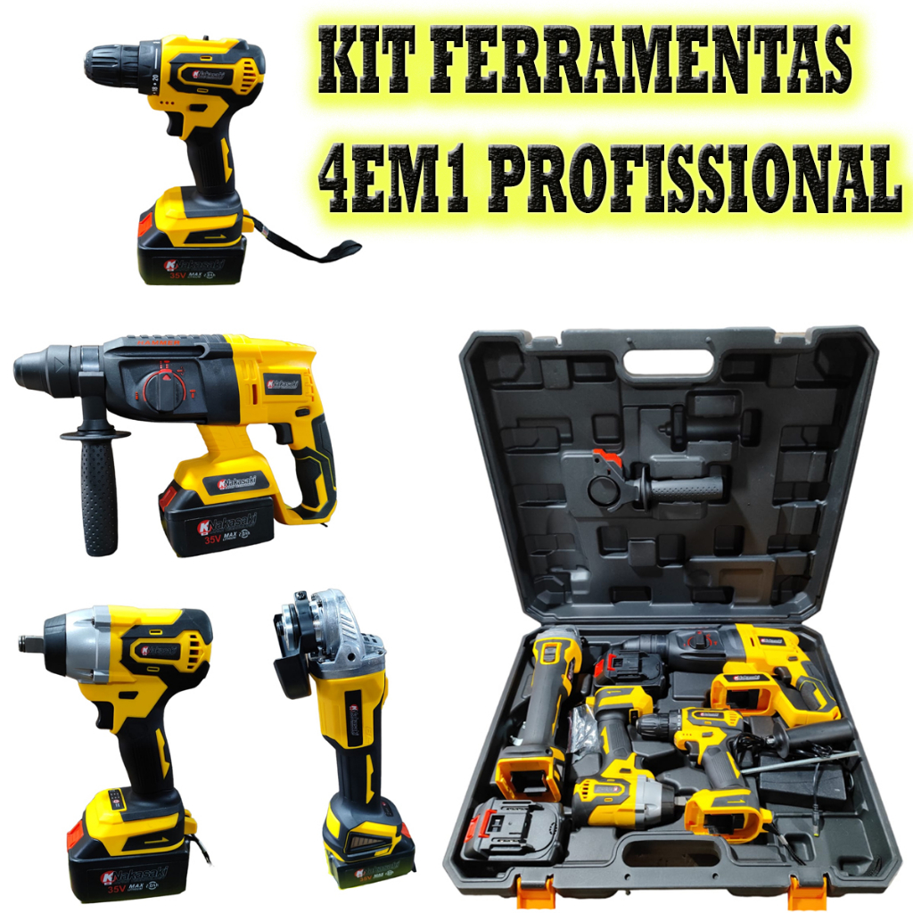 Kit Ferramentas Multifunções A Bateria Bivolt 4 Em 1 35v Brushless Martelete Rotativo Furadeira Industrial Parafusadeira Chave de Impacto Pneumatica Esmerilhadeira Com Maleta