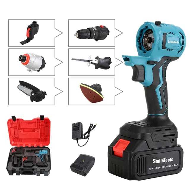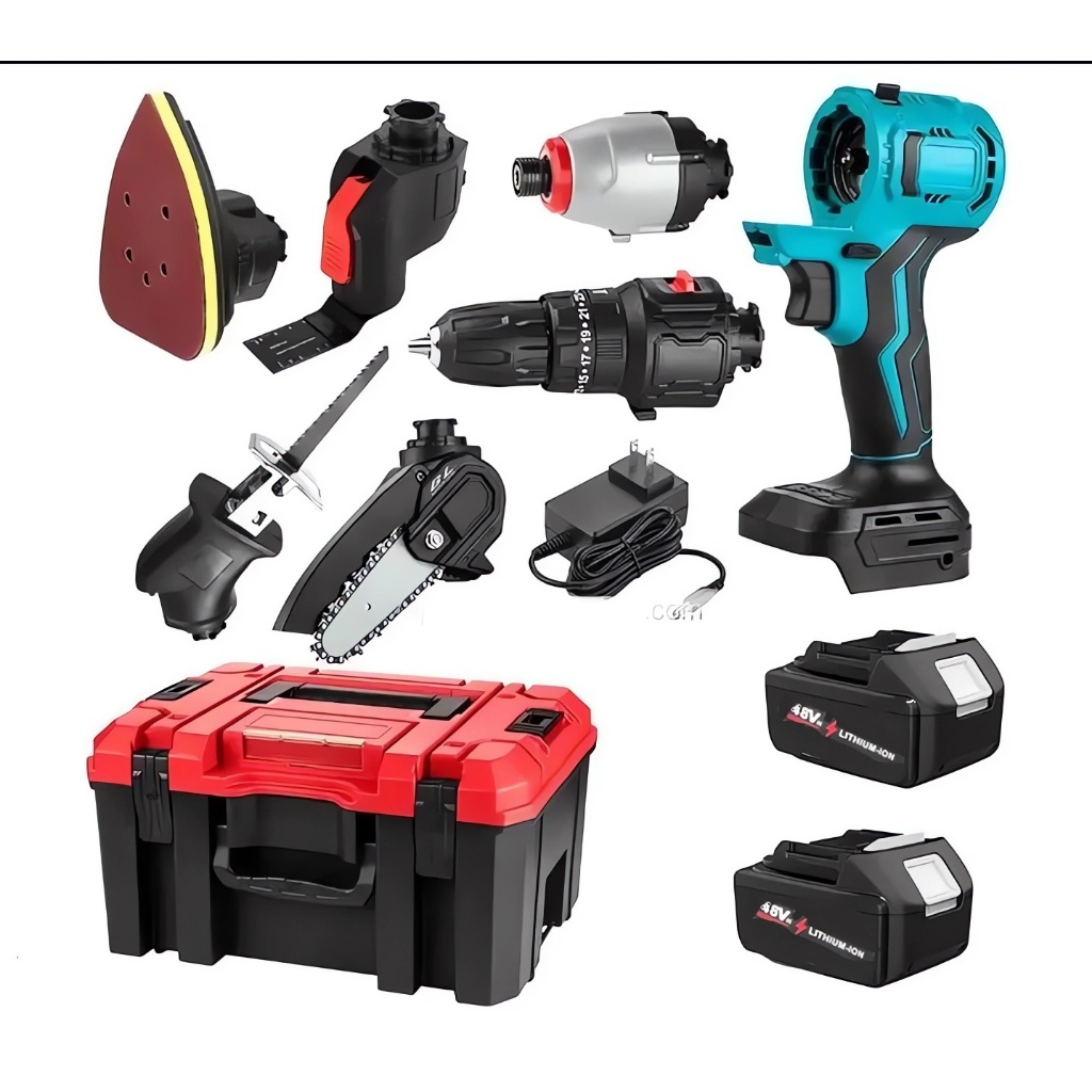 Kit 6 em 1 Furadeira Parafusadeira Lixadeira Motosserra Cerra alternativa Chave de impacto Multiferramenta oscilante a bateria 48Vh