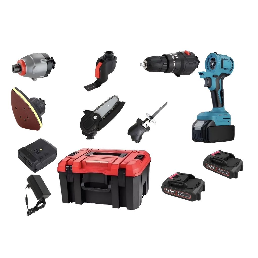 Kit 8 em 1 Furadeira Parafusadeira Lixadeira Motosserra Cerra alternativa Chave de impacto Multiferramenta oscilante a bateria 18Vh