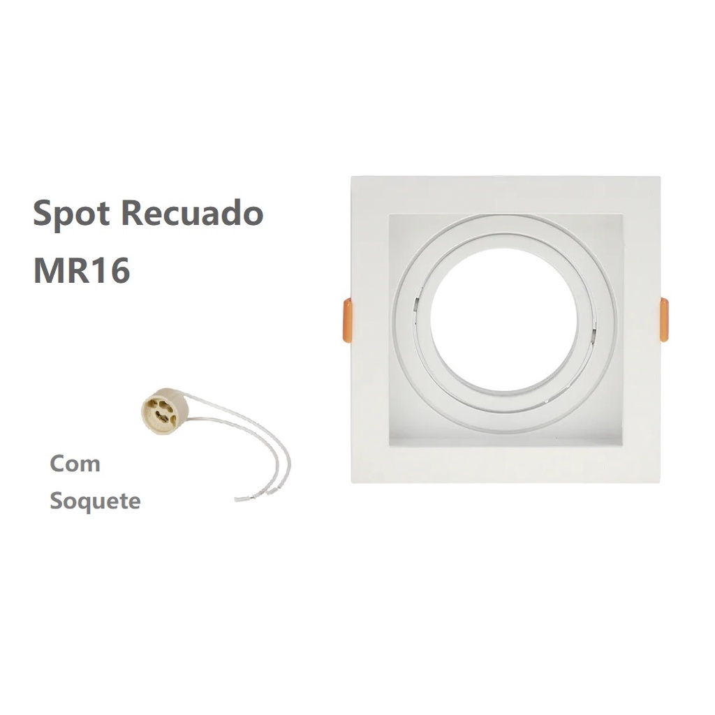 Spot Recuado Branco Embutir Quadrado Com Base Gu10 Pra Dicroica MR16 Emenda Com Outro