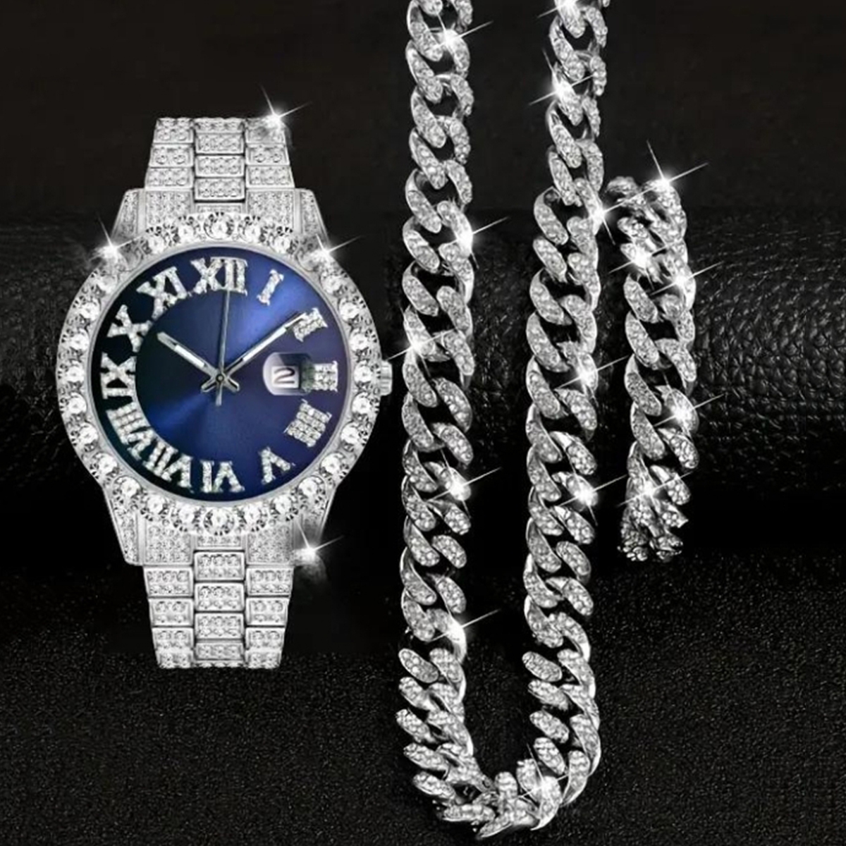 3pcs/Set Relógio Masculino Conjunto De Relógios De Moda Explosivo Calendário Bracelete De Negócios Hip Hop