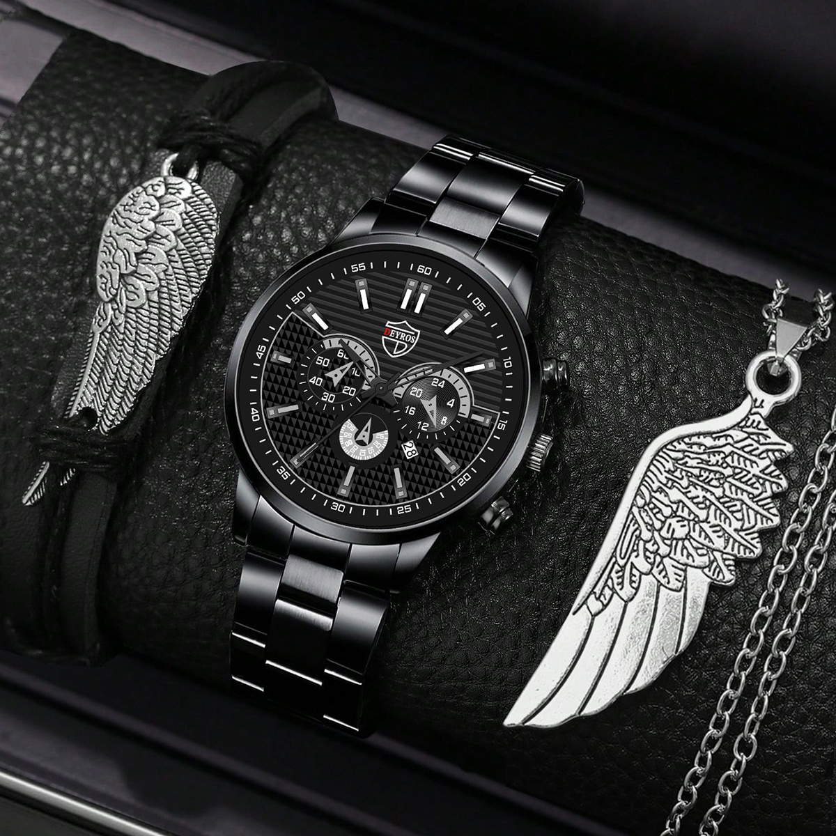 3pcs/set , 1pc Ponteiro Redondo Masculino Data Relógio De Quartzo & Pulseira De 1pc Colar , Escolha Ideal Para Presentes