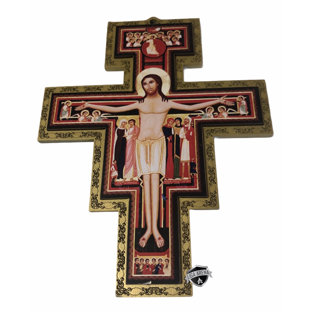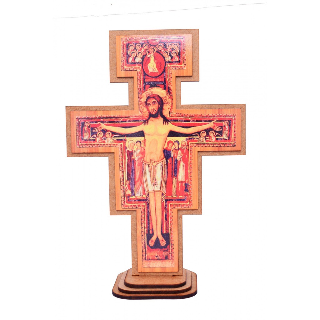 Cruz Crucifixo São Damião São Francisco 36 cm MDF