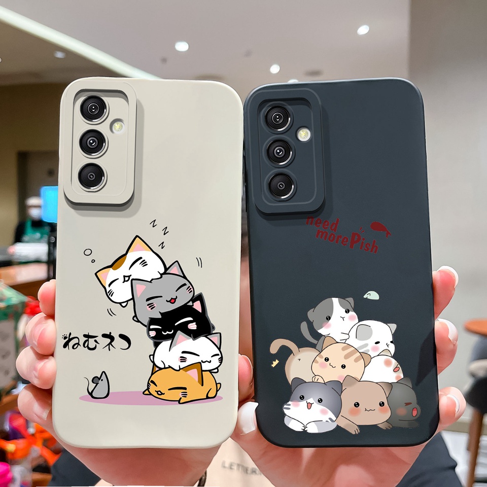 Para samsung m33 m34 m34 5G Capa De Gato Fofo Traseira Quadrada De Silicone Líquido Macio À Prova De Choque Galaxy Pára-Choques