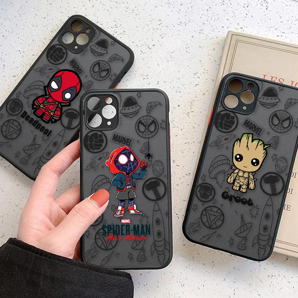 Marvel Vingadores Um Logotipo CuteCartoon Groot Spiderman Skin Feel Matte Celular Capa Para Apple iPhone 11 12 13 14 Plus Pro Max XR XS X 6 S 7 8 SE Mini