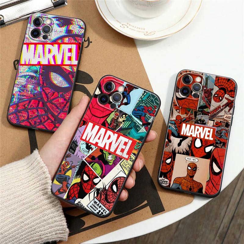 Marvel Comics Homem-Aranha Arte Cartaz Preto Silicone Capa De Celular Para iPhone 12 11 13 14 Pro Max XS XR X 8 7 Plus SE Macia