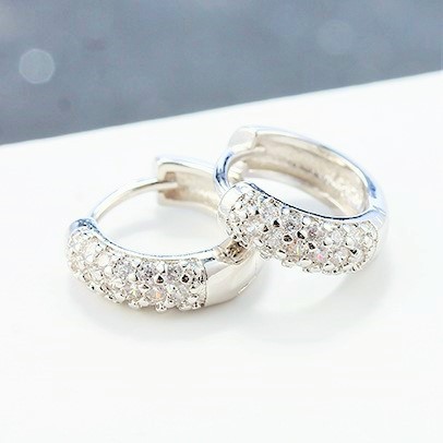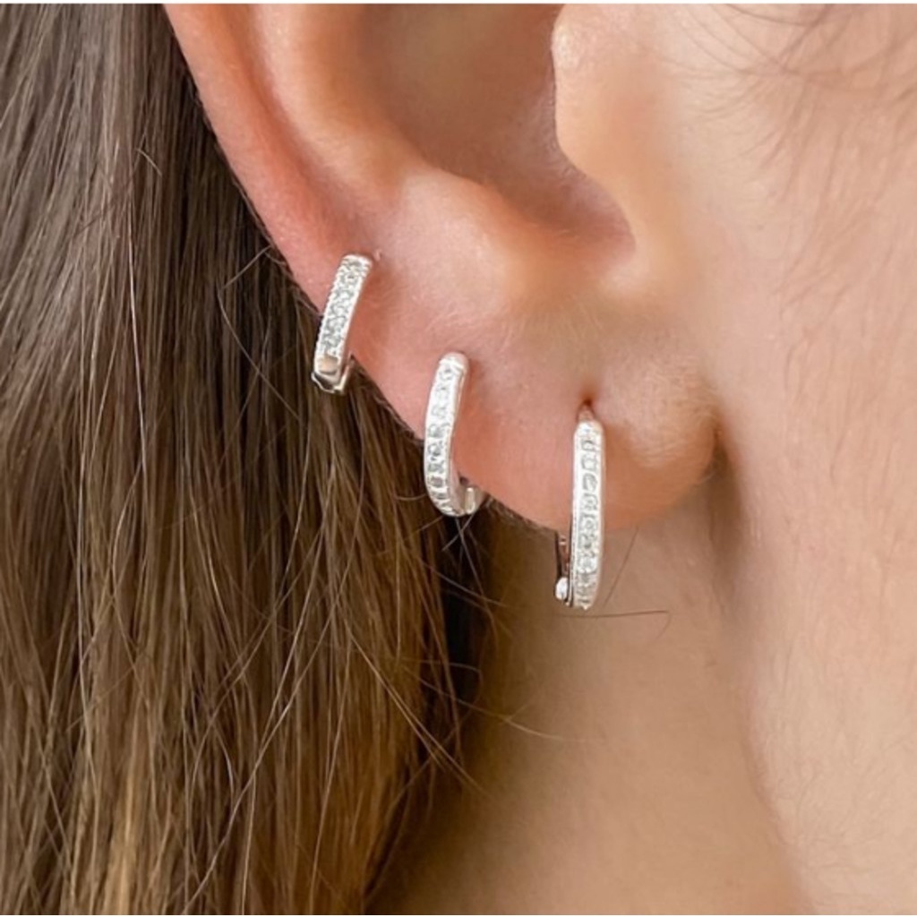 Brinco Masculino 11mm Argola Neymar Prata Cravejada Zirconia a Ouro Branco Premium Banhada a Prata 925 / Brilho Eterno / Zirconia