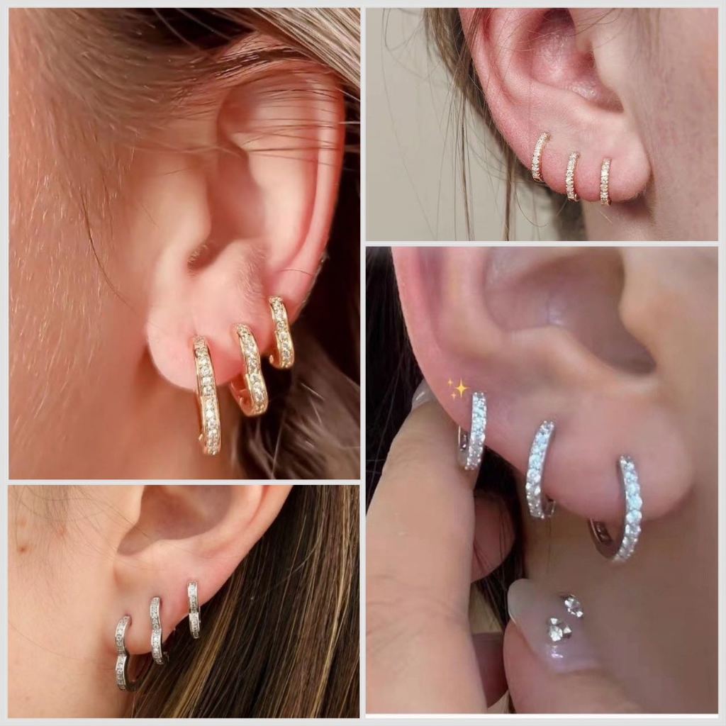 Brinco Trio Argola BANHADA A PRATA 925 com Zircônia Cravejada Kit 3 pares / Trio de ARGOLINHAS FOLHEADAS Á PRATA 925