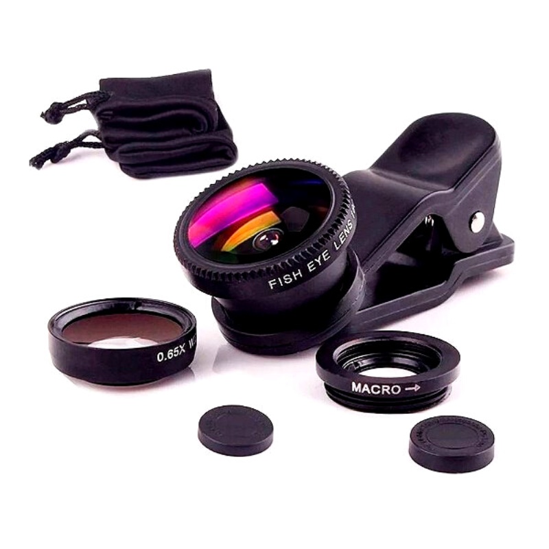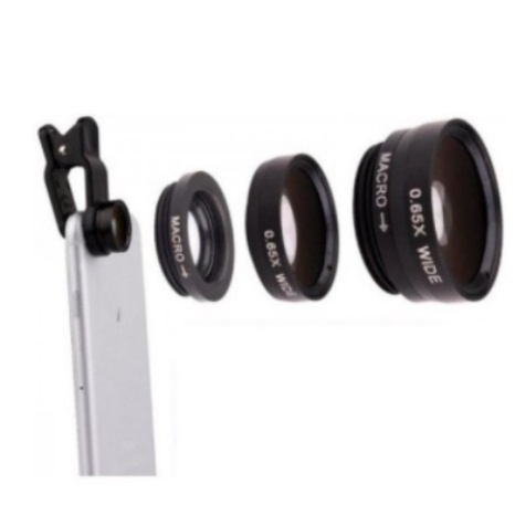 Kit Lente 3 Em 1 Macro Wide Fish Eye Olho De Peixe Celular