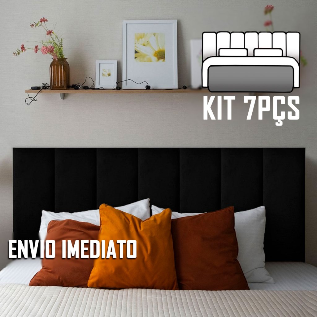 Cabeceira Cama Box Casal COURINO Kit 7 PEÇAS Modular Estofada Adesiva em Modulos de 60x20cm Modulada Placa de Parede