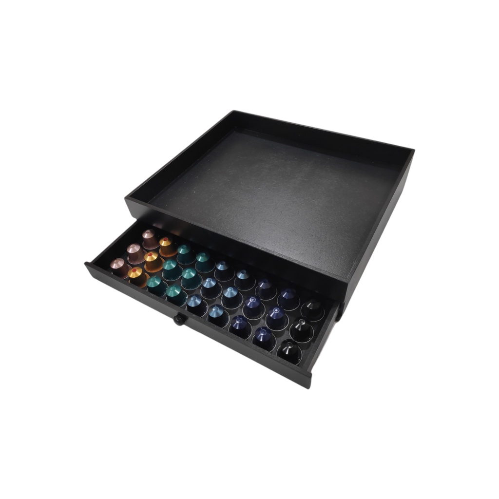 Bandeja Decorativa Porta Cápsulas Nespresso com Gaveta Cantinho do Café Preto