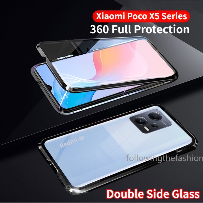 Para Xiaomi Poco X5 Pro 5G 2023 X 5 Capa Do Telefone Estrutura Metálica Magnética De Dupla Face Vidro Temperado 360 ° Capa Protetora Total À Prova De Choque Anti Impacto Capinha Phone Case
