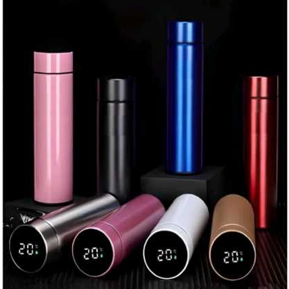 Kit 5 Garrafa Térmica Inteligente Em Aço Inox Com Termômetro Digital 500ml Led Café Água Quente Gelado