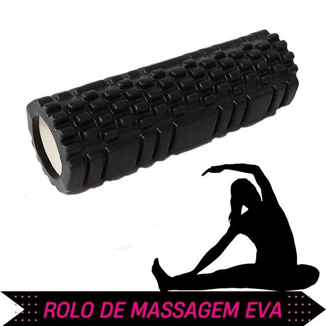 Rolo de Massagem Preto em EVA Para Exercícios 10 x 30 cm