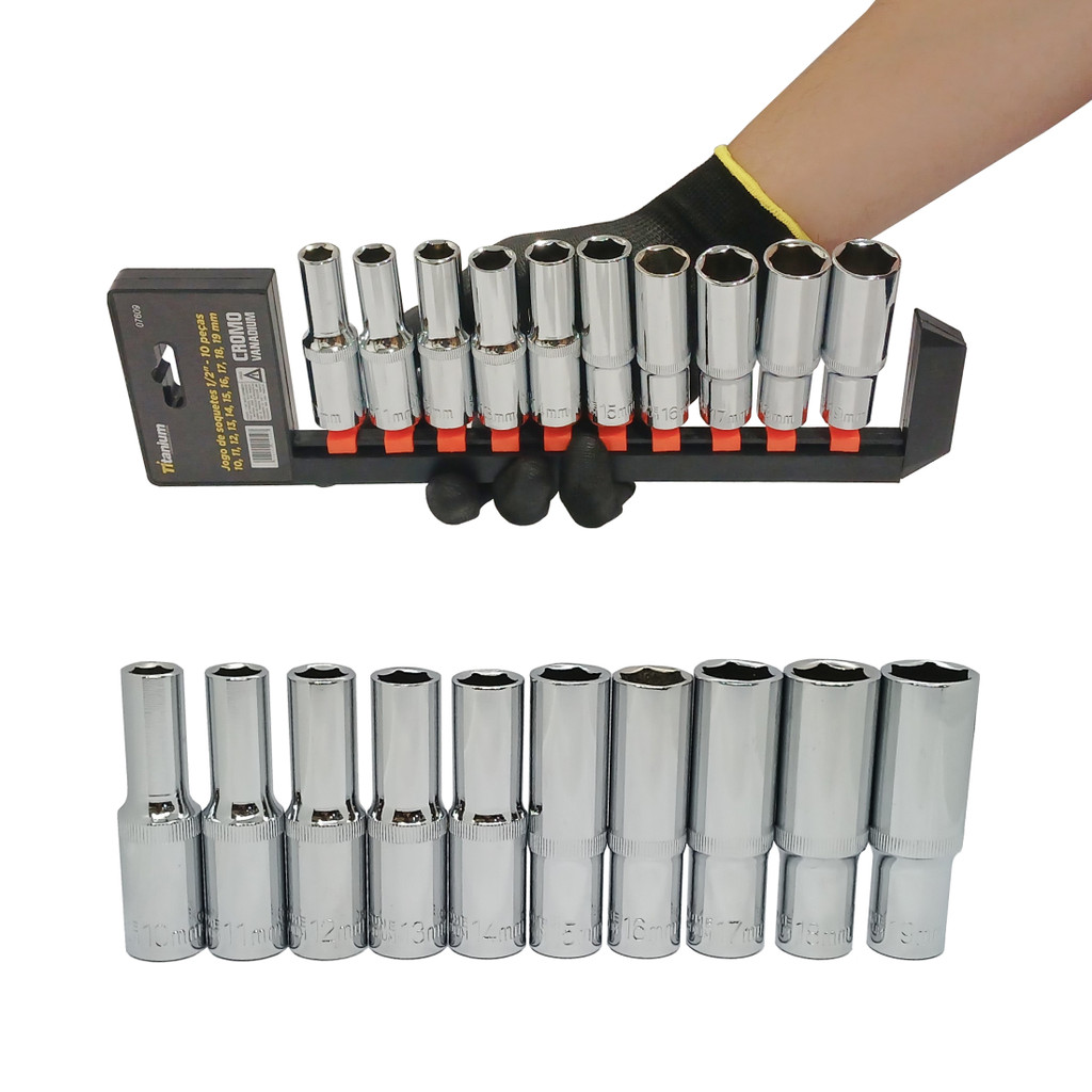 Jogo De Soquetes Longos Sextavado 1/2 Do 10 Ao 19mm Vanádio
