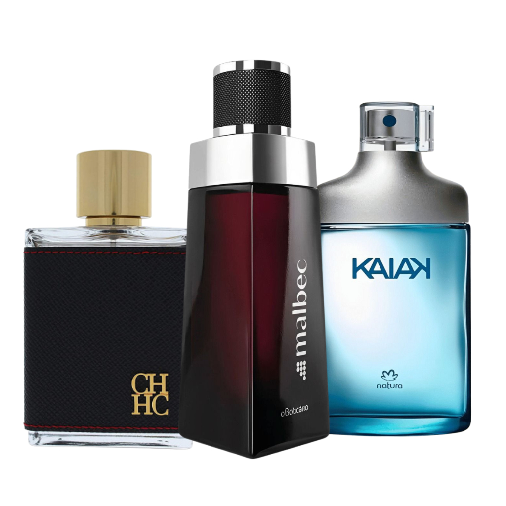 Kit 3 Perfumes Masculinos - CH - Malbec - Kaiak - 100ml cada