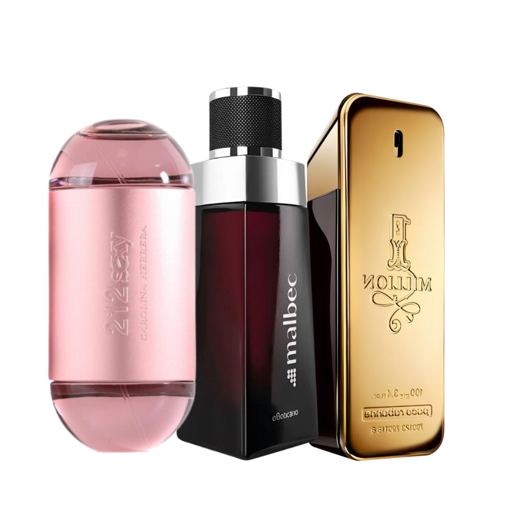 Kit 3 Perfumes - 212 - Malbec - 1 Million - 100ml cada