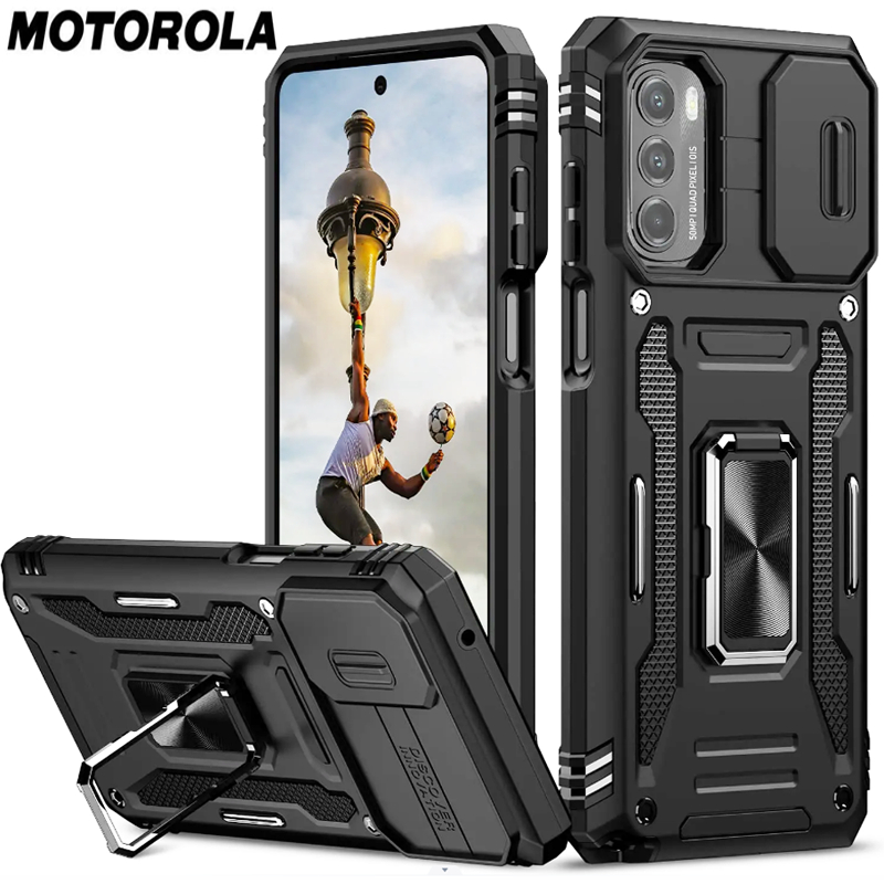 Motorola G54 G14 G22 G32 G42 G53 G73 E13 E22 Edge 40 Caso de telefone rígido resistente à prova de choque com suporte de metal