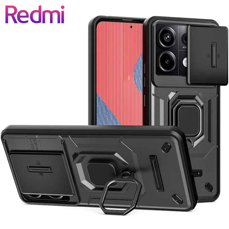 Redmi Note 13 Pro Note 12 Pro Redmi 13C Poco X6 Pro Caso de telefone rígido à prova de choque com suporte de metal