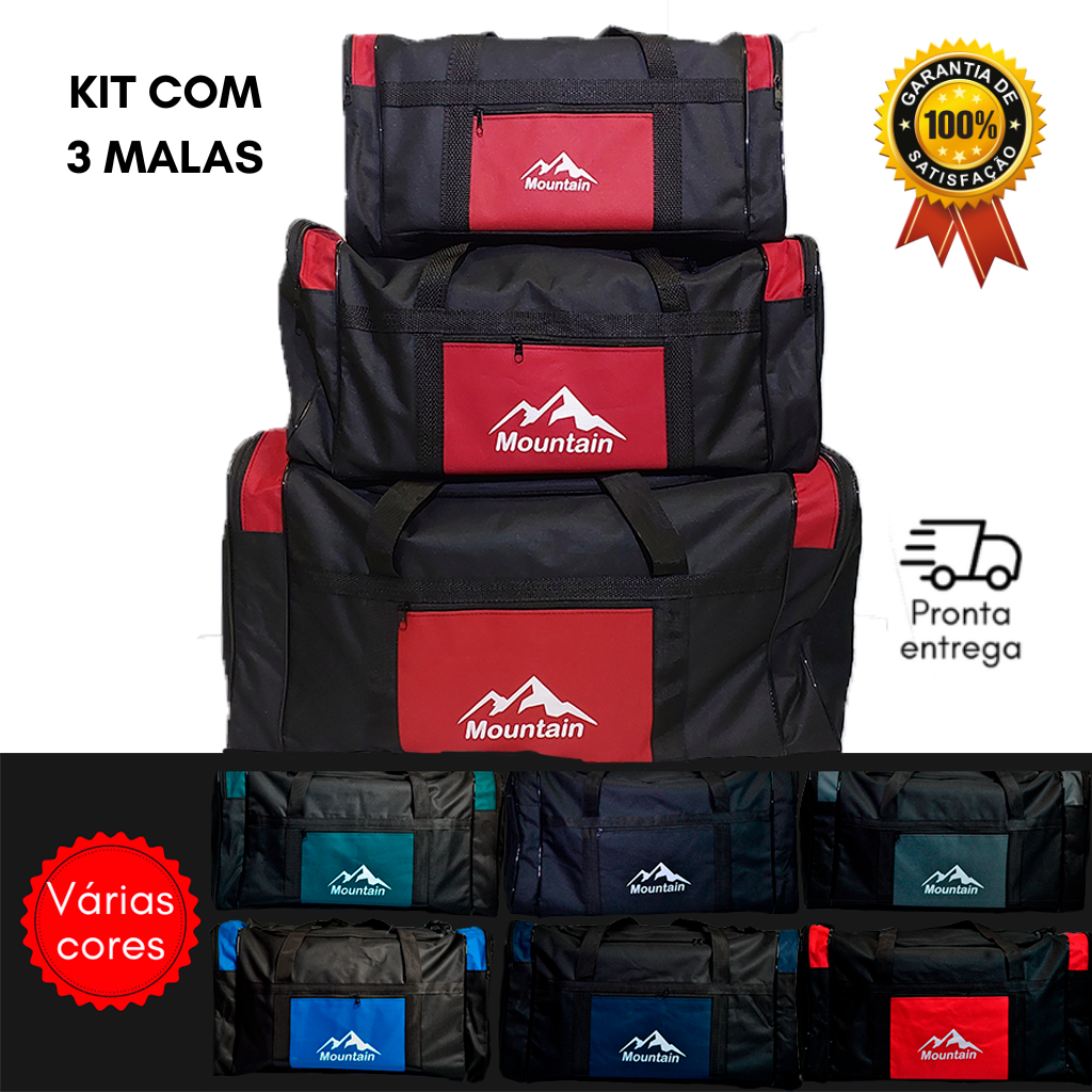 Kit 3 Bolsa De Viagem Resistente Dobrável Mala Praia Sacola Media GG, G E M Grande Familia Ferias