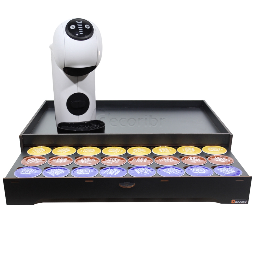 Bandeja Cantinho do Café com Gaveta Porta Capsula Dolce Gusto ou Três Corações ou Nespresso 24 Capsulas Preto Gaveta Embutida Reforçado Suporta Maquina - Decori Br