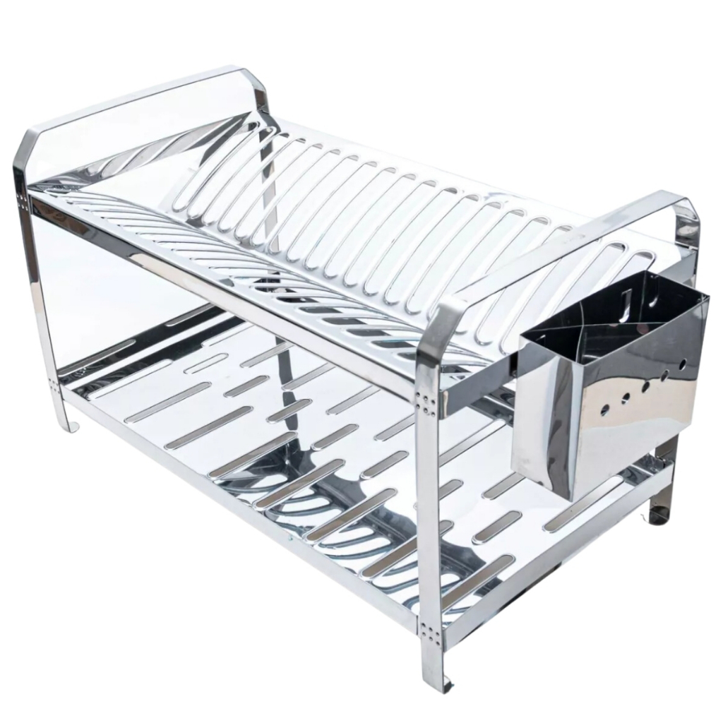 Escorredor de Louças até 20 Pratos com Porta Talher Todo em Aço Polido Inox Mak Inox
