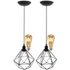 2 Pendentes Aramado Teto Diamante Luminária Lustre Retrô Balcão + Lâmpada Led ST64 Vintage Preto