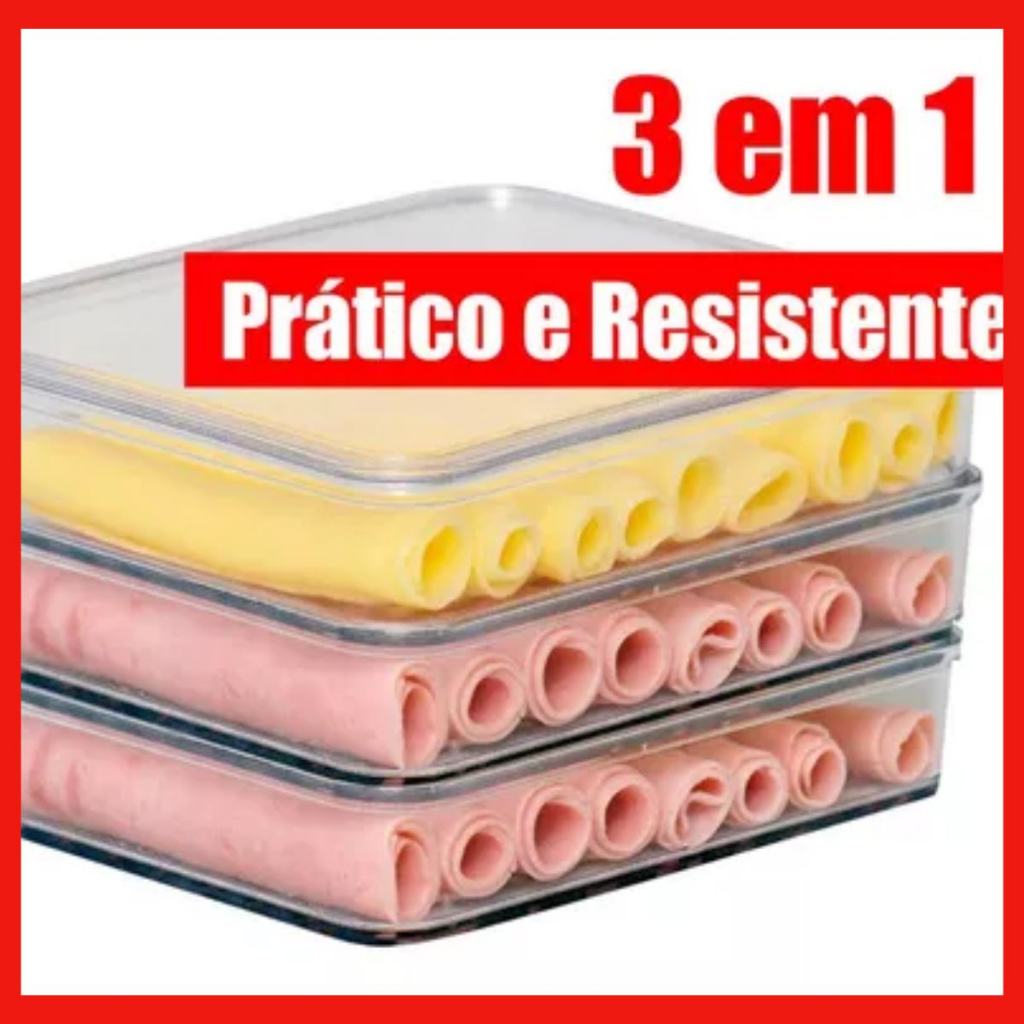Porta Frios com Divisórias Pote Plástico Vasilha Para Presunto e Mussarela de Geladeira