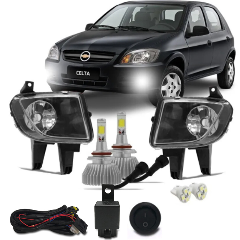 Kit Farol Milha Neblina Celta Prisma 2007 2008 2009 10 11 + Super Led Hb4 6000k