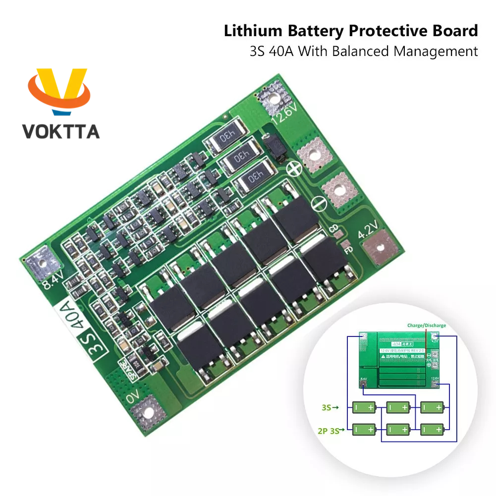 VOKTTA 3S 40A Placa De Proteção Do Carregador De Bateria De Íon-Lítio De 18650 BMS Para Motor De Furação 11.1V 12.6V Melhora O Equilíbrio
